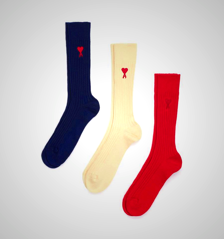 Trepack med Ami Paris Ami de Coeur-strumpor i marinblå, beige och röd. Perfekt passform i storlekarna 35-46.